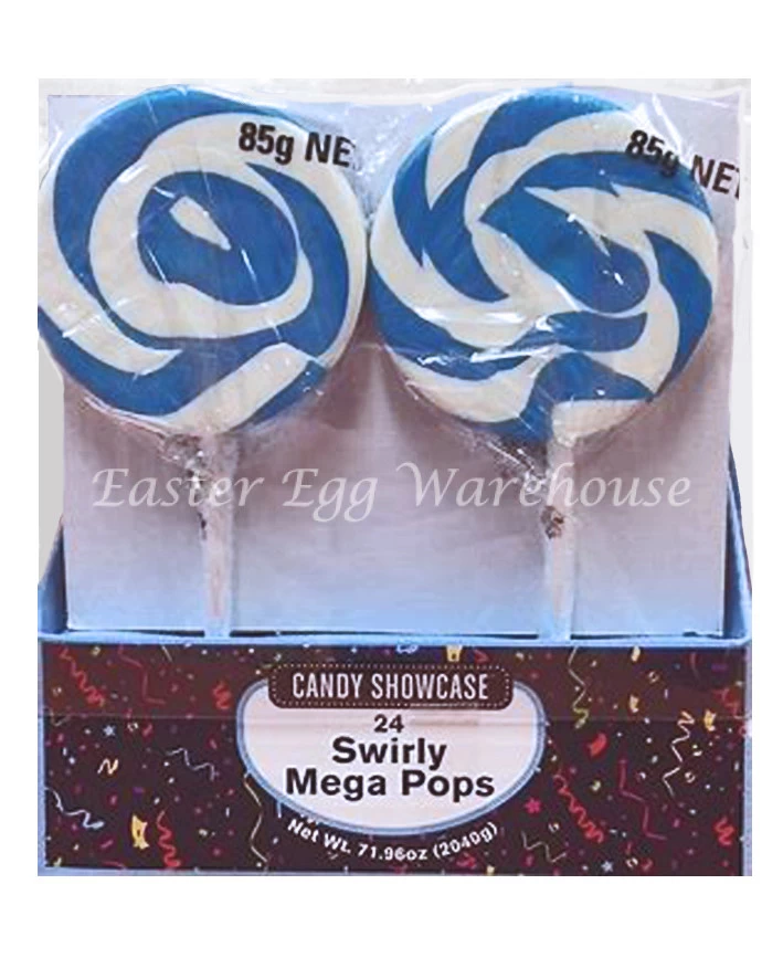 Lollipops – Blue & White Swirly Mega Pops 85g X 24