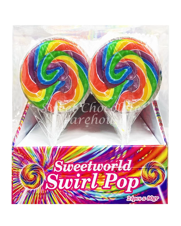 Lollipops – Sweetworld Rainbow Swirly Pops 80g X 24