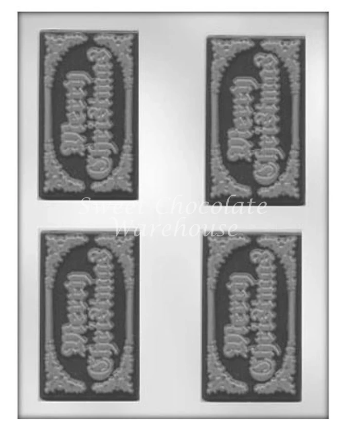 - Each Merry Christmas Bar is 9.5cm x 5.7cm x 0.5cm. 4 cavities per mould.