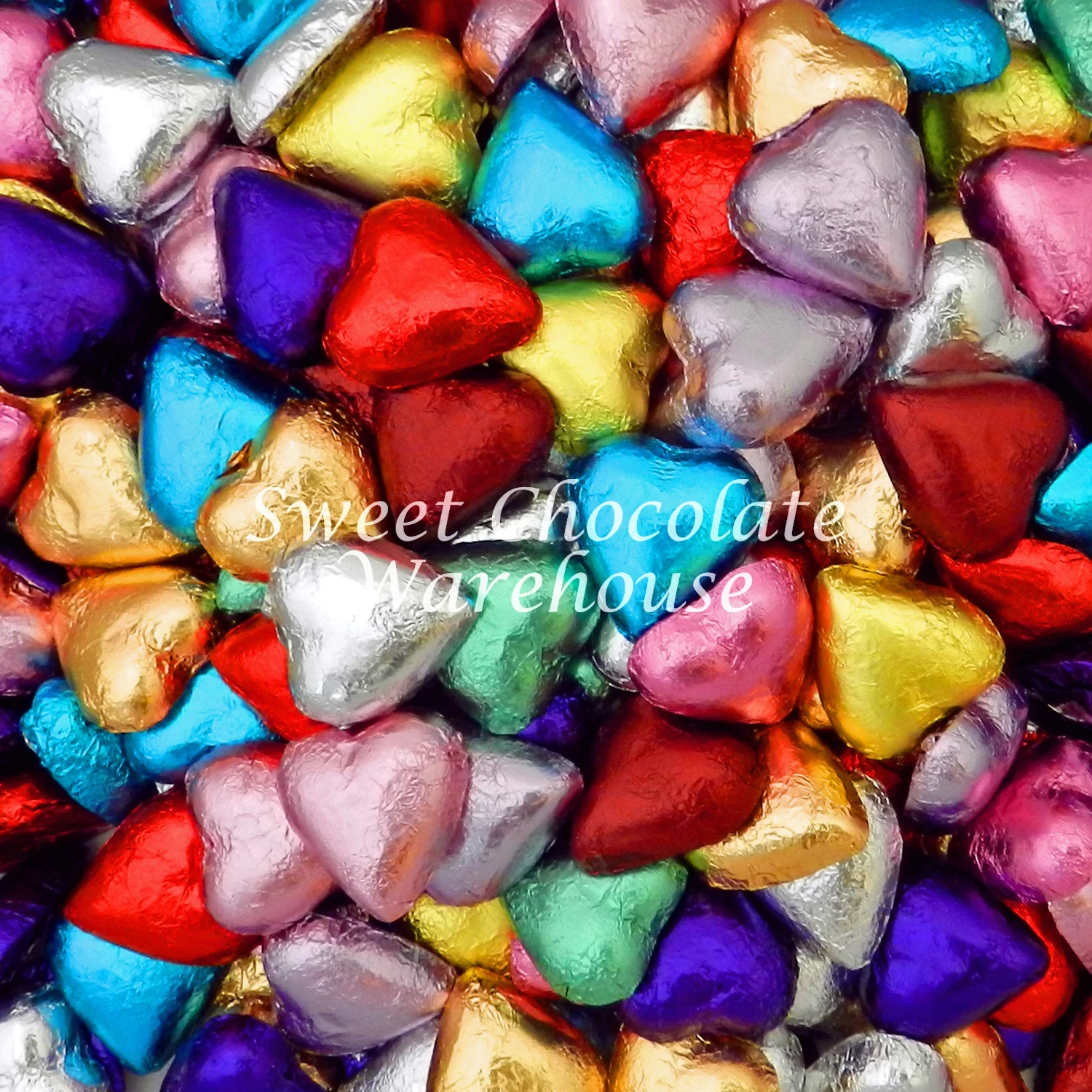 - Milk Chocolate Hearts wrapped in Β Assorted Coloured foil 500g