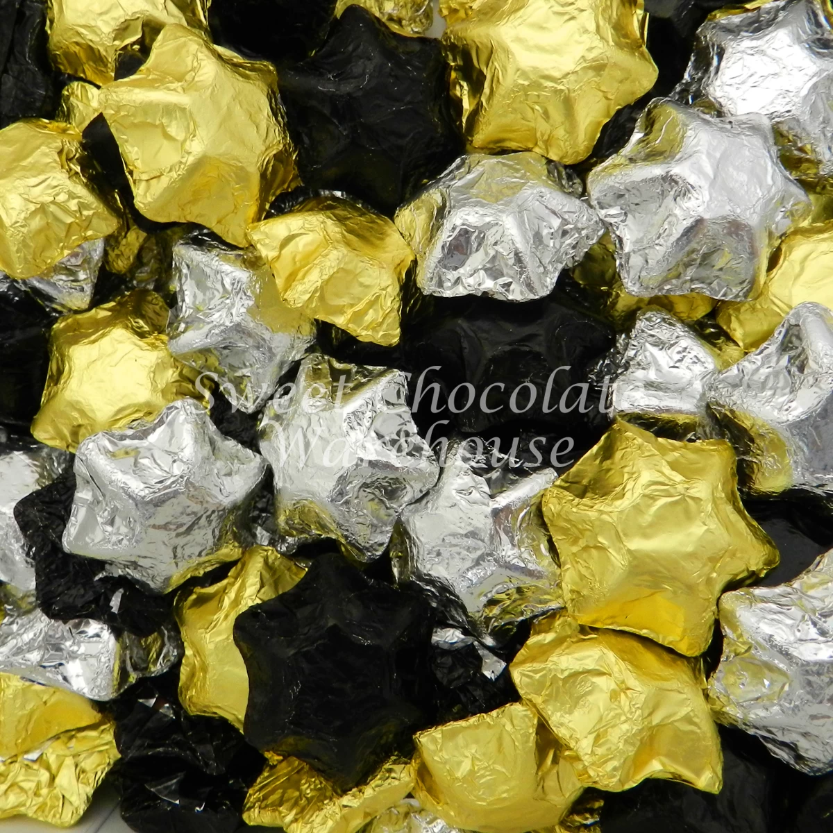 - Milk Chocolate Stars – Custom Mix Black, Silver & Gold 1kg