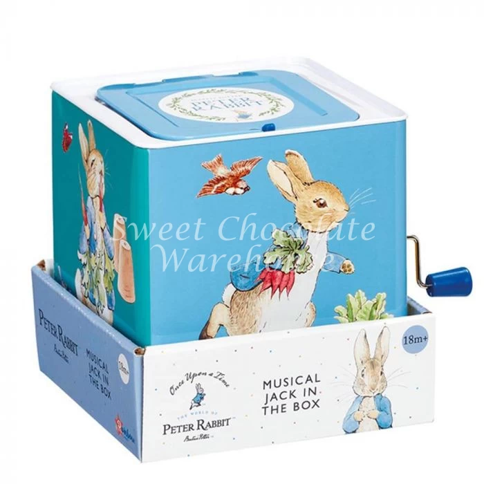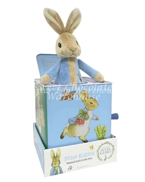 - Presented on a platform box Music and action combine in this beautifully nostalgic jack-in-the-box toy from Beatrix Potter! Simply wind up the handle to hear the classic nursery rhyme ‘Pop Goes The Weasel’, and wait in anticipation for Peter Rabbit to jump out at the end of the tune! Little ones will be delighted by this charming musical toy, which also features iconic illustrations on all four sides of the box. Product measures 26cm when popped.