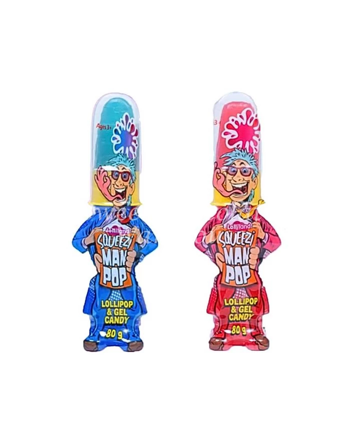 - Squeezi Man Pop Lollipop and Gel Candy 80g